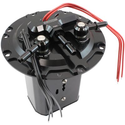 The module features our 3 wire electrical bulkheads to allow the user to wire each fuel pump individually to stage them when required. With the third set of wires for the OEM fuel level sender to keep the wiring neat and in one location. With -8ORB ports for feed, and -6ORB return and crossover with factory OEM push to connect fittings installed.