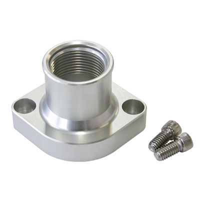 This Aeroflow Performance billet thermostat housings is specifically designed to suit Ford Cleveland 351 engines andis factory OEM direct replacement.  With the radiator hose outlet facing straight up allows for OEM configuration. It features an internal -16ORB thread for custom plumbing applications as well. All Aeroflow Performance thermostat housings feature an O-ring base flange, as opposed to using the factory paper style gasket, this ensured a superior leak free seal. Machined from T6-6061 billet aluminium and available in several anodised finishes.