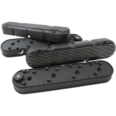 Cast aluminum valve covers are a great way to improve and refine the look of your LS engine, without any radical changes to its configuration. These Aeroflow Performance valve covers are a 2-piece retro finned design. These feature a low, internally baffled LS valve cover base with integrated coil mounts and a retro style finned overcover that hides the ignition coils and wiring harness. It also features a baffled stock-style ventilation set-up with an oil fill cap while also retaining the factory gaskets and bolts. All hardware and spacers for mounting ignition coils and 12-point dress up hardware and rubber grommets for the coil covers are included. Fits all LS engines using both LS1 and LS2 or similar coils.