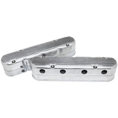 AeroFlow=GM LS 2 Piece Retro Finned Valve Cover Set Polished Finish Suit GM LS Series