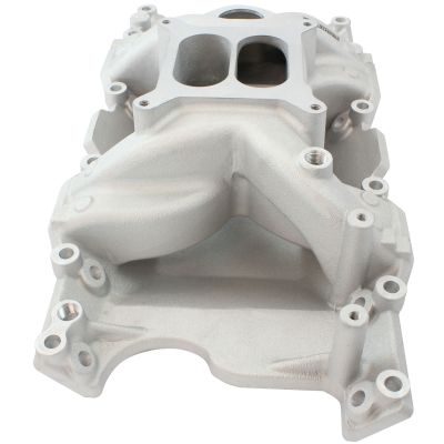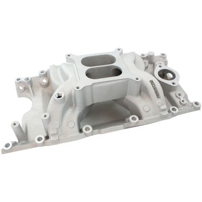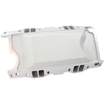 Get the maximum power from your carbureted engine with this Air Gap Small Block Chrysler carbureted cast intake manifold. This dual-plane intake manifold is designed to keep your air and fuel distribution going into the engine at a steady and even flow for maximum performance and efficiency. The carburetor-mounting pad is designed to accept aftermarket square-bore carburetors with either manual or electric choke options available on today’s market. Fits 318, 340 and 360 cubic inch small block Chrysler engines operating from 1500 to 6500 rpm range. In most cases, these manifolds accept late model water necks, air conditioning, alternator and H.E.I. ignition systems, NOTE 1979 and later rotary A/C compressor will not clear water neck.