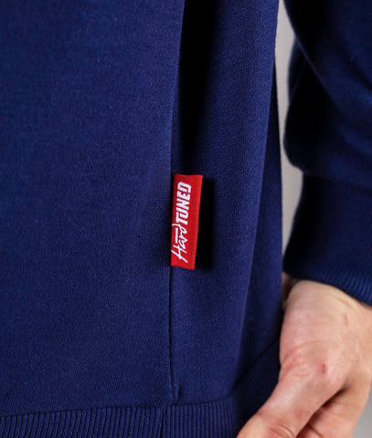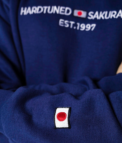 A super comfy, ultra-premium fleece sweater featuring embroidered artwork in custom stitching on the front. Extra detailing on the Sakurai sweater includes custom tags and a small Japanese flag patch on the lower sleeve.
