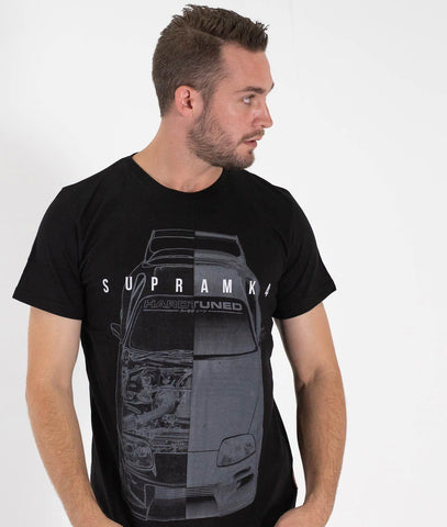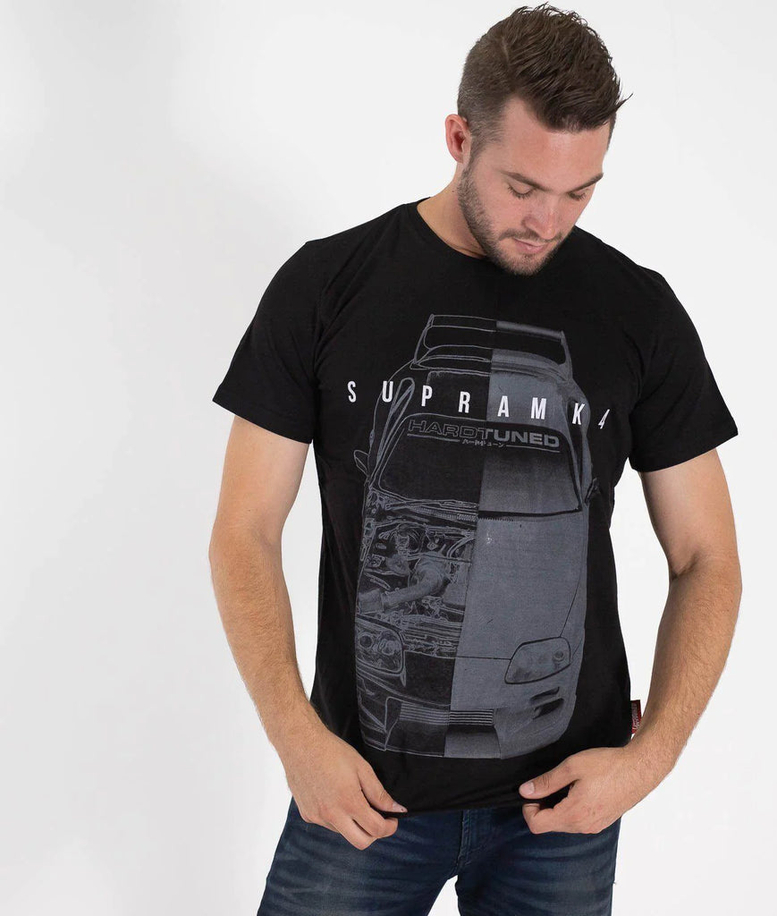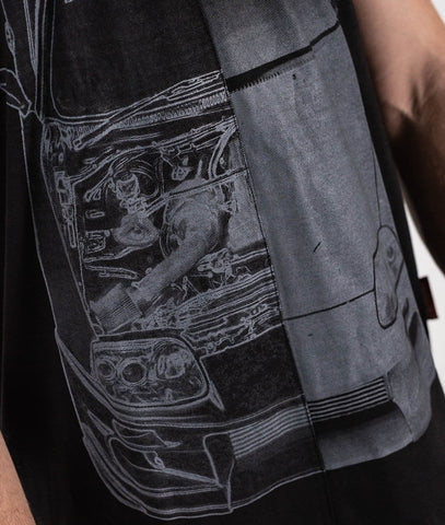 Featuring half photo & half artistic blueprint, each split tee is assembled from two separate prints, sewn together, then reprinted again after assembly to create a unique finish.